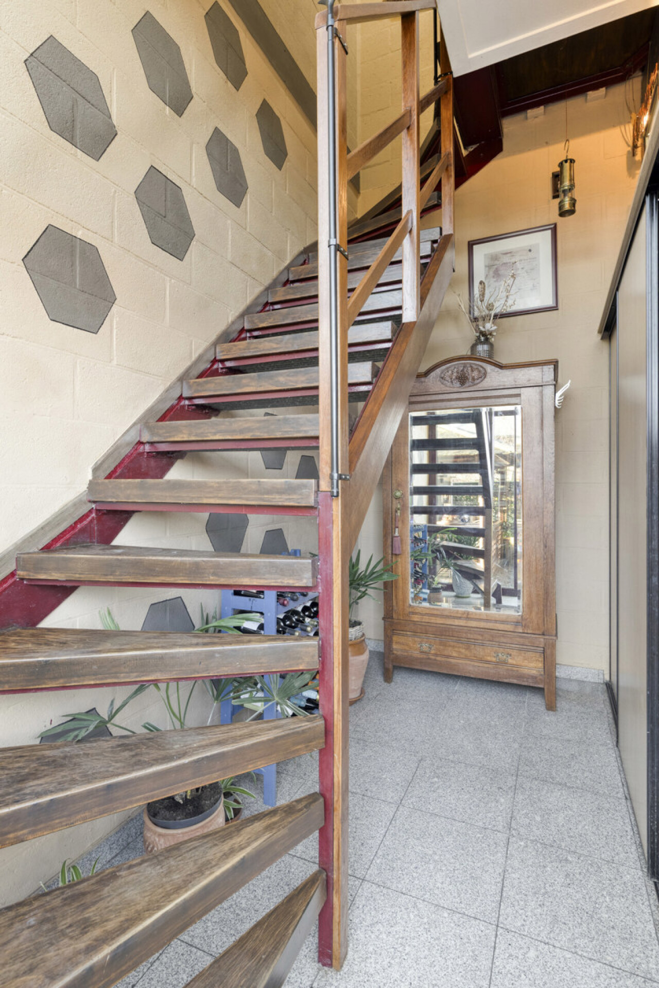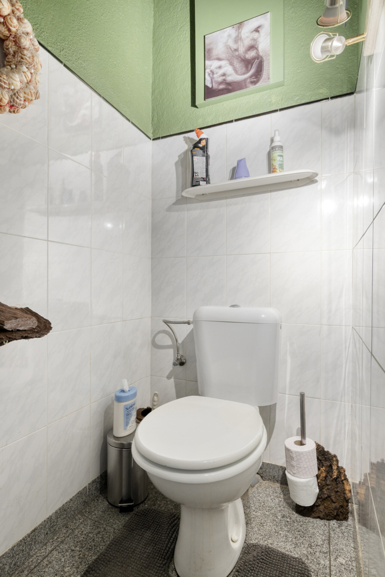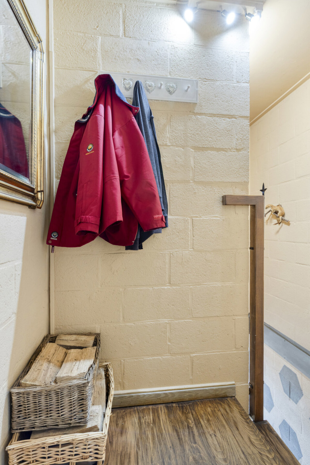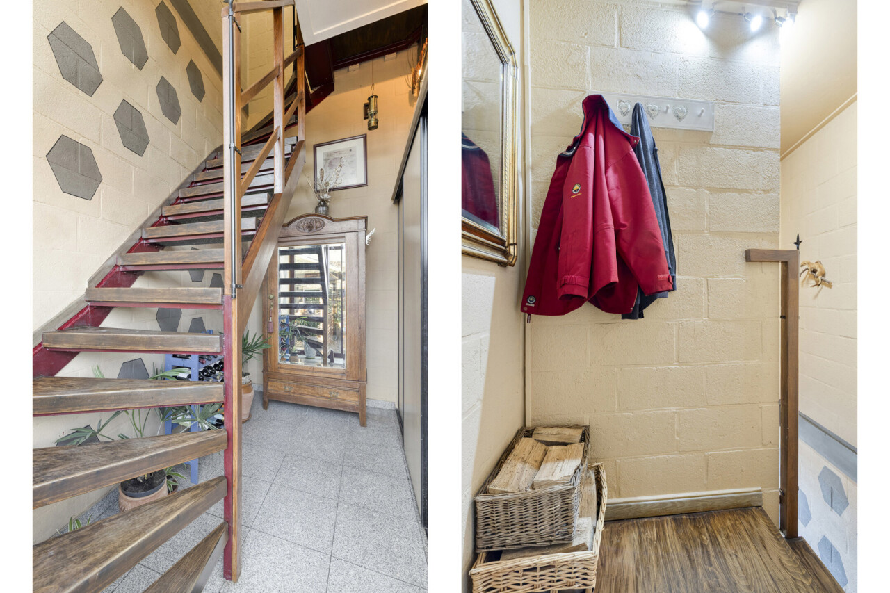Dit alleenstaand appartement ligt boven een rustige handelszaak en is volledig uitgerust. We komen binnen via de ruime inkomhal. Via een houten draaitrap bereiken we aan het appartement.