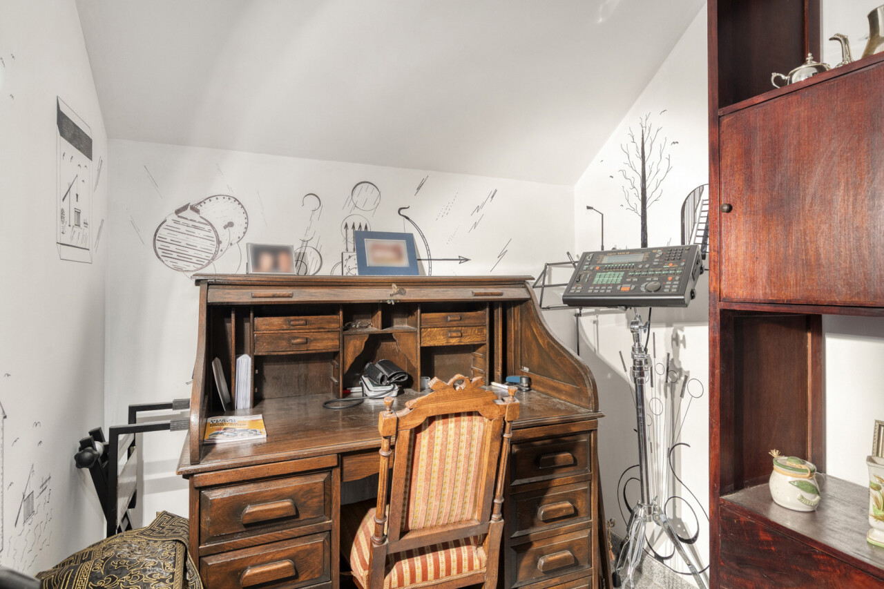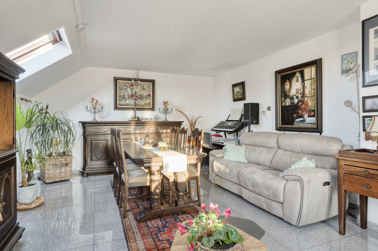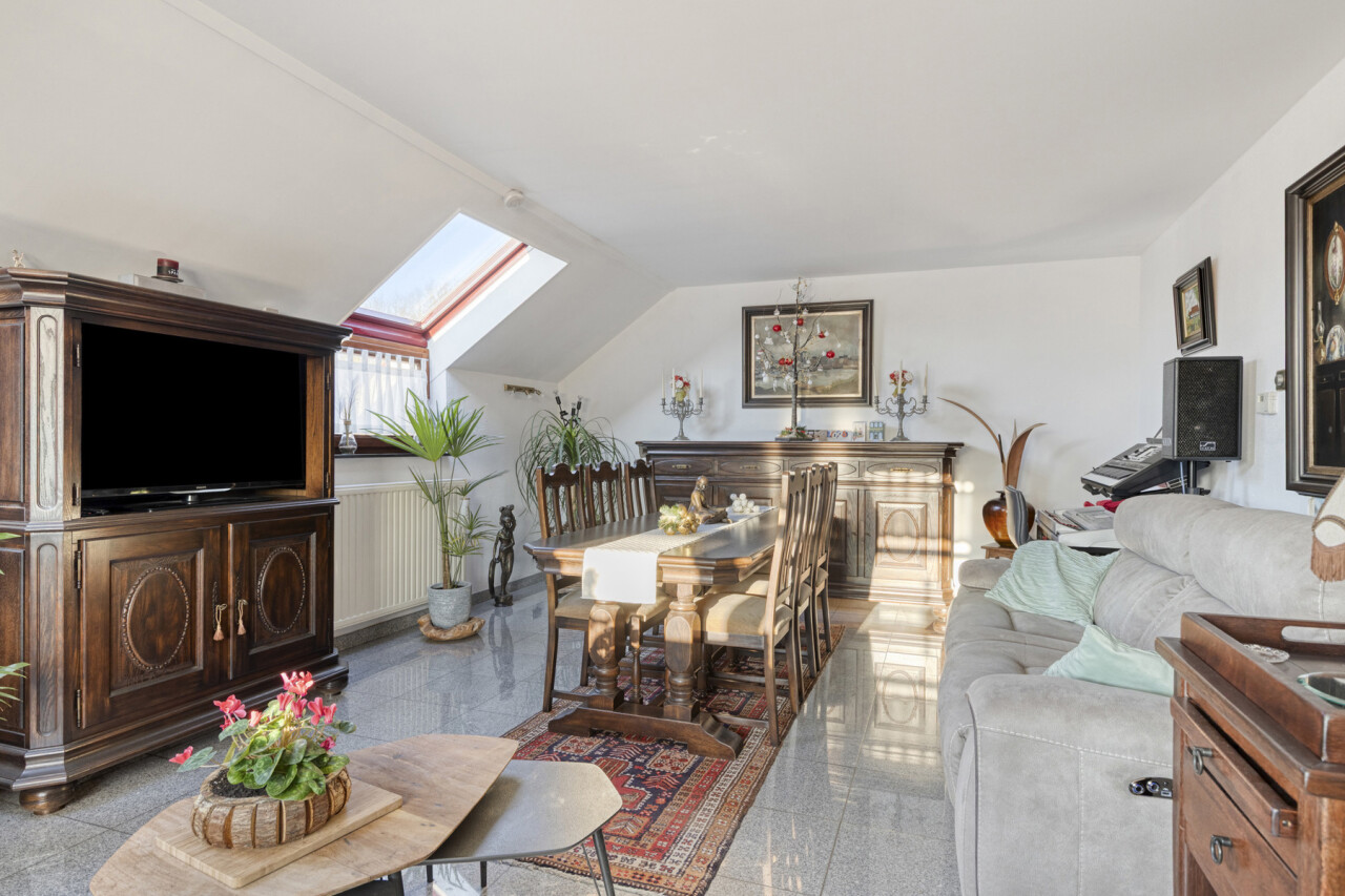 De living en eetkamer zijn voldoende ruim en zijn uitgerust met een goedwerkende houtkachel. Hierdoor kan men het hele appartement verwarmen zodat de verwarming kosten ( aardgas) zeer laag uitvallen.