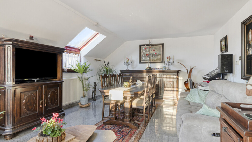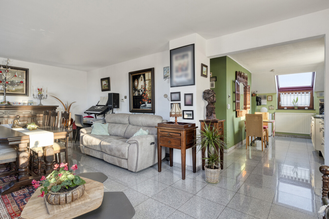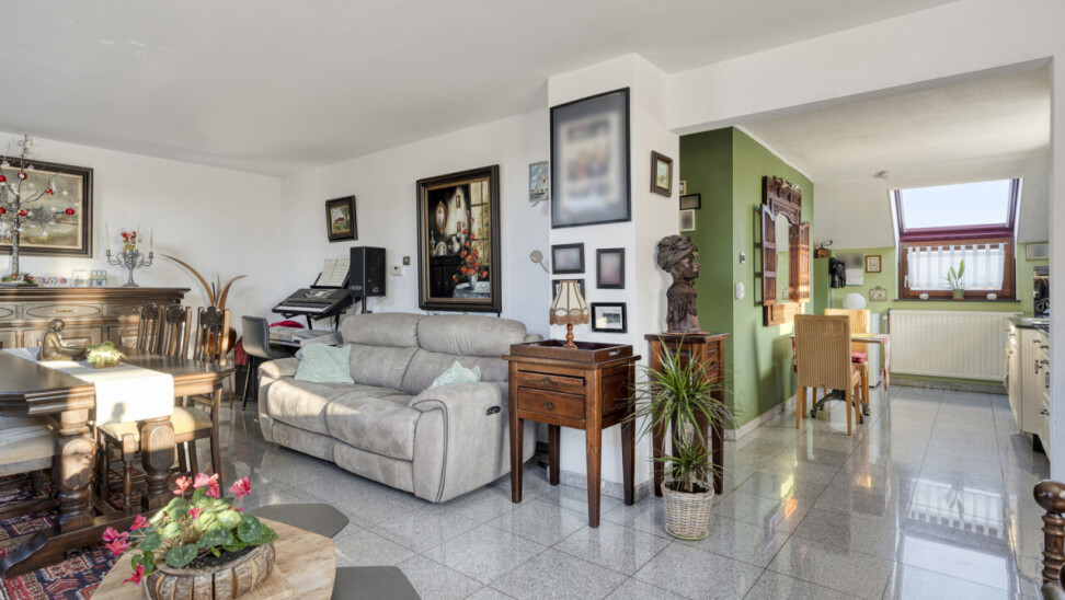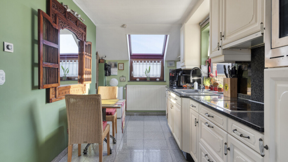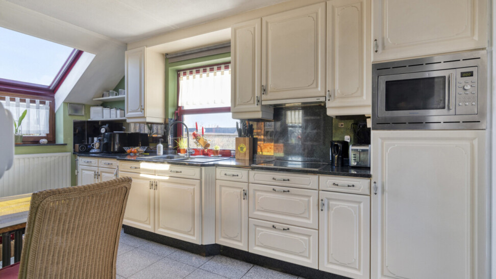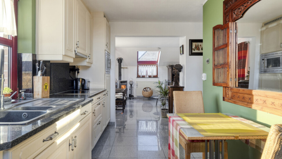 Door de vele raampartijen krijgt men hier een zeer groot ruimtelijk gevoel. De open keuken en de leefruimte vormen 1 geheel.