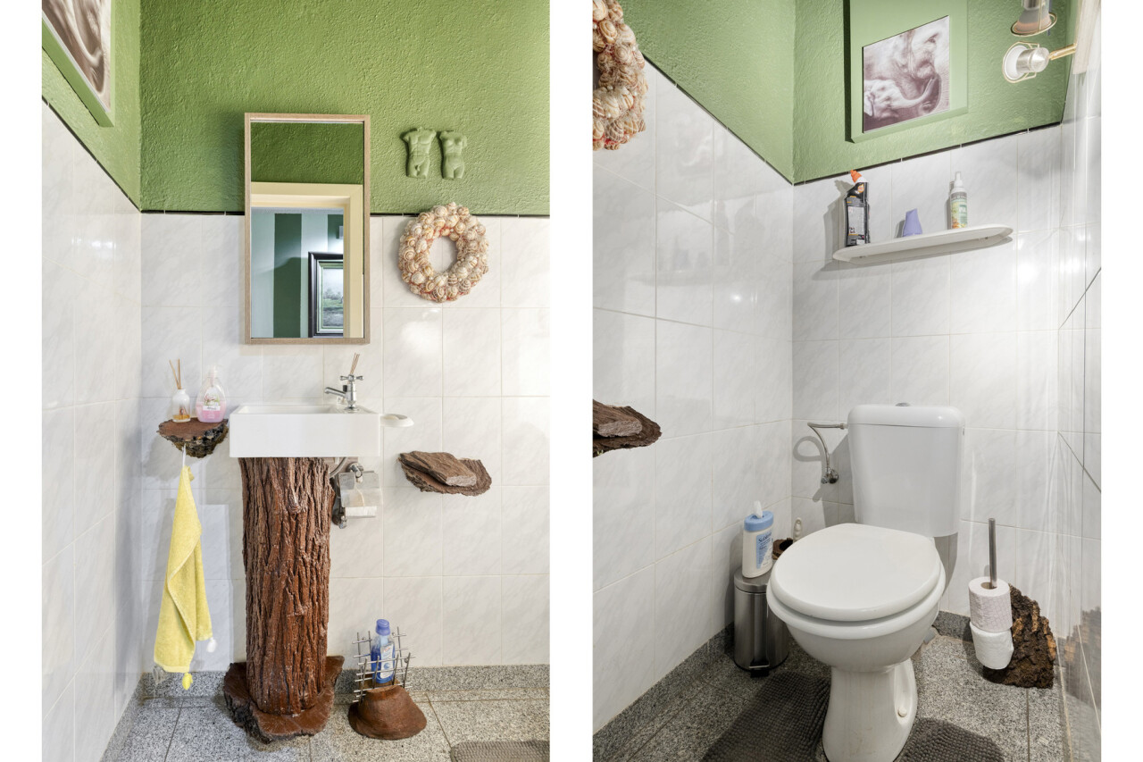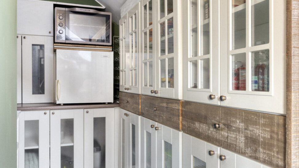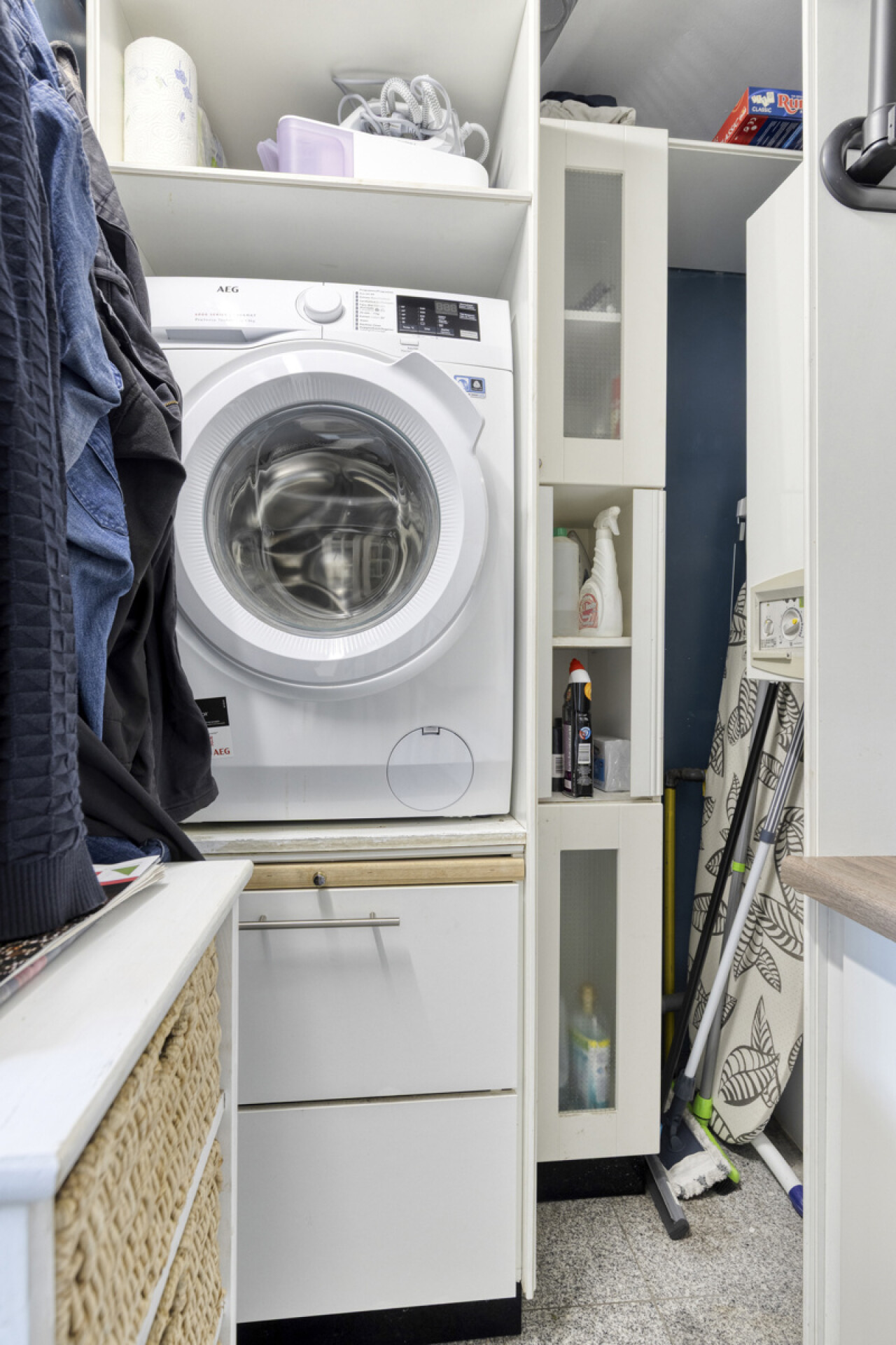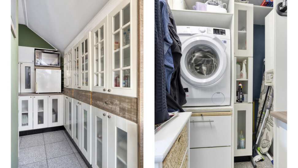 De keuken is voorzien van een combi-oven, een lavabo , een keramische kookplaat en zeer vele opbergkastjes die men ook in de bijkeuken heeft verder getrokken. Ook de wasplaats is zeer praktisch ingericht.