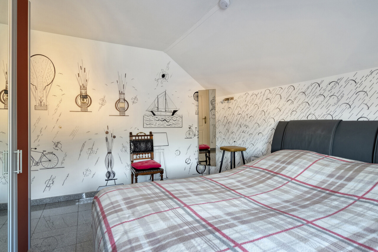 De 2 slaap kamers bieden voldoende plaats voor een tweepersoonsbed en een kleerkast. In de grootste slaapkamer heeft men een mogelijkheid om een dressing te maken.