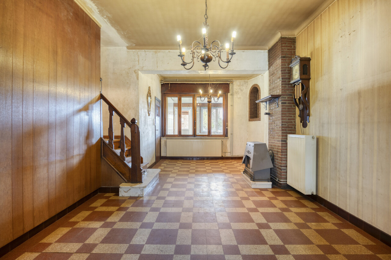 Bij het binnenkomen wordt u verwelkomd in een ruime leefruimte met authentieke elementen zoals de houten trap en karaktervolle accenten. Dankzij de grote raampartijen geniet u hiervan aangenaam natuurlijk licht.