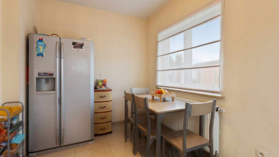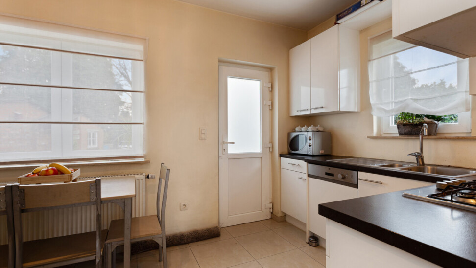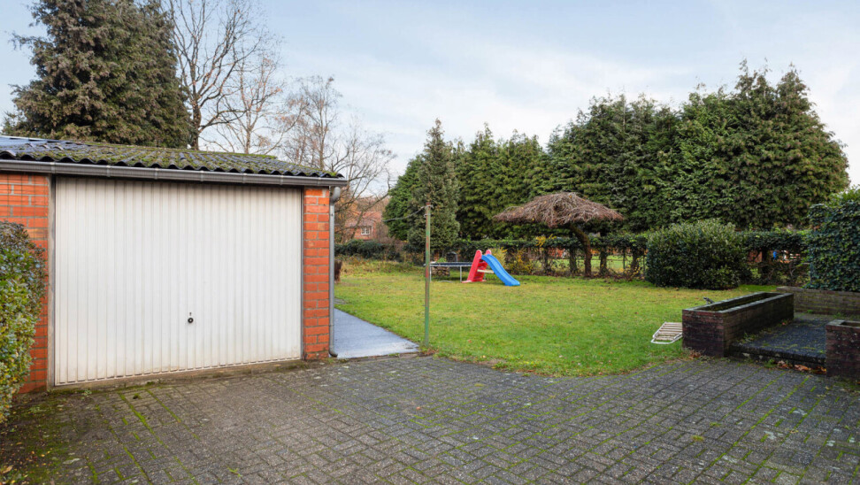 Via de keuken hebben we toegang tot de gezellige tuin met een garage. Verder zijn er voor de woning ook voldoende staanplaatsen voorzien.