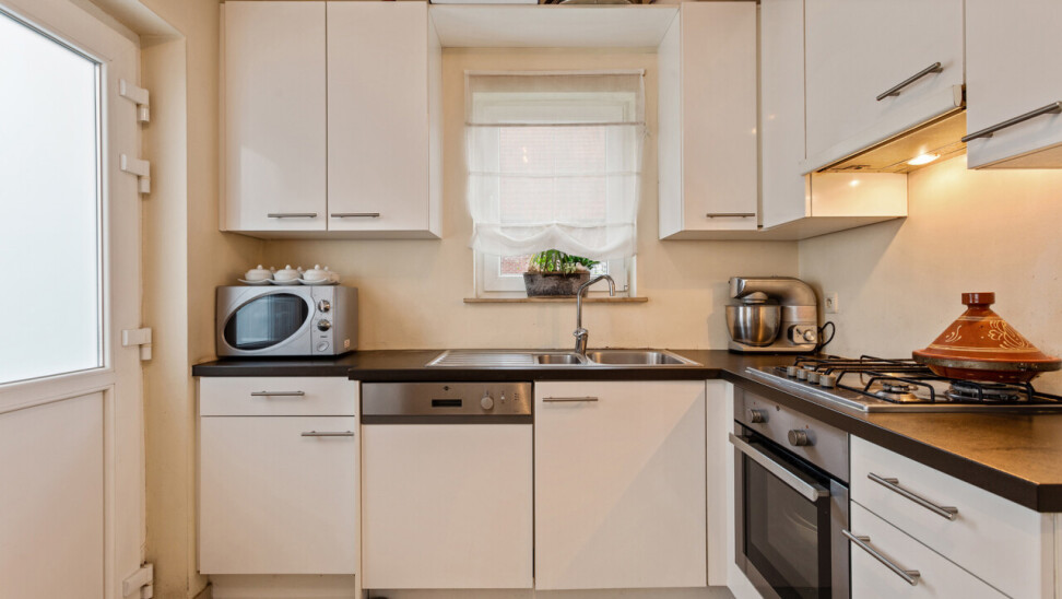 Naast de eetkamer vinden we de volledig uitgeruste keuken terug.